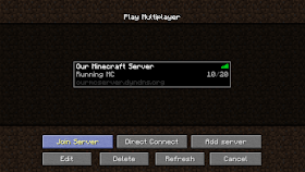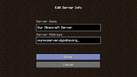 Run Minecraft > Multiplayer > Add server > Server Name: Our Minecraft Server > Server Address: ourmcserver.dyndns.org > Done > select and click join or double-click on Our Minecraft Server
